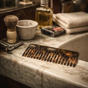 市販のコームでよく見かけるプラスティックやハードラバーではなく、ヴィンテージのコームで多用されていた天然木材由来のポリマー「アセテートセルロース」を採用し、独特の質感や重みをお楽しみいただけます。